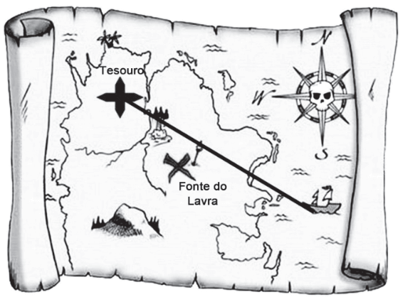 Considere que, nesse mapa, o segmento de reta que liga o navio à marca do tesouro meça 7,6 cm.
