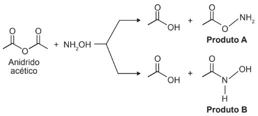 A hidroxilamina (NH2OH) é extremamente reativa em reações de substituição nucleofílica, justificando sua utilização em diversos processos. A reação de substituição nucleofílica entre o anidrido acético e a hidroxilamina está representada.