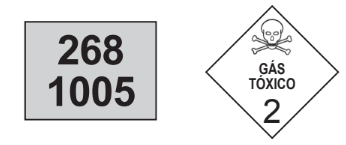 Os três algarismos da parte superior do painel indicam o “Número de risco”. O número 268 indica tratar-se de um gás (2), tóxico (6) e corrosivo (8). Os quatro dígitos da parte inferior correspondem ao “Número ONU”, que identifica o produto transportado.
