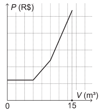 O gráfico que melhor descreve o valor P, em real, a ser pago por mês, em função do volume V de água consumido, em metro cúbico, é