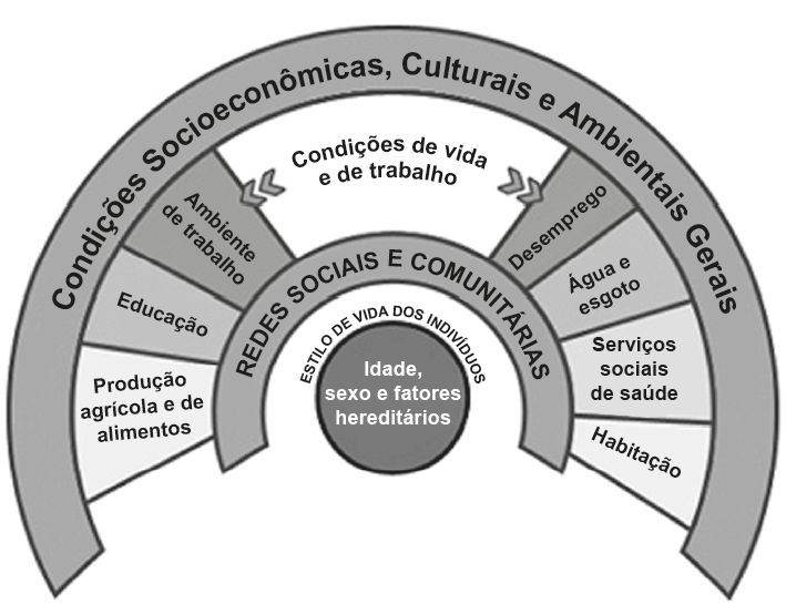 O conceito de saúde formulado na histórica VIII Conferência Nacional de Saúde, no ano de 1986, ficou conhecido como um "conceito ampliado" de saúde, conforme ilustrado na figura. Esse conceito foi fruto de intensa mobilização em diversos países da América Latina nas décadas de 1970 e 1980, como resposta à crise dos sistemas públicos de saúde.