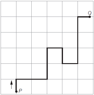 Uma pessoa precisa se deslocar de automóvel do ponto P para o ponto Q, indicados na figura, na qual as linhas verticais e horizontais simbolizam ruas.