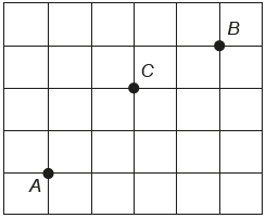 Três amigos, André, Bernardo e Carlos, moram em um condomínio fechado de uma cidade. O quadriculado representa a localização das ruas paralelas e perpendiculares, delimitando quadras de mesmo tamanho nesse condomínio, em que nos pontos A, B e C estão localizadas as casas de André, Bernardo e Carlos, respectivamente.