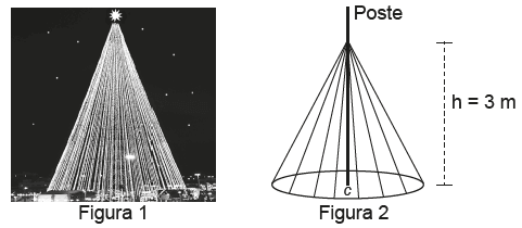 No período de fim de ano, o síndico de um condomínio resolveu colocar, em um poste, uma iluminação natalina em formato de cone, lembrando uma árvore de Natal, conforme as figuras 1 e 2.