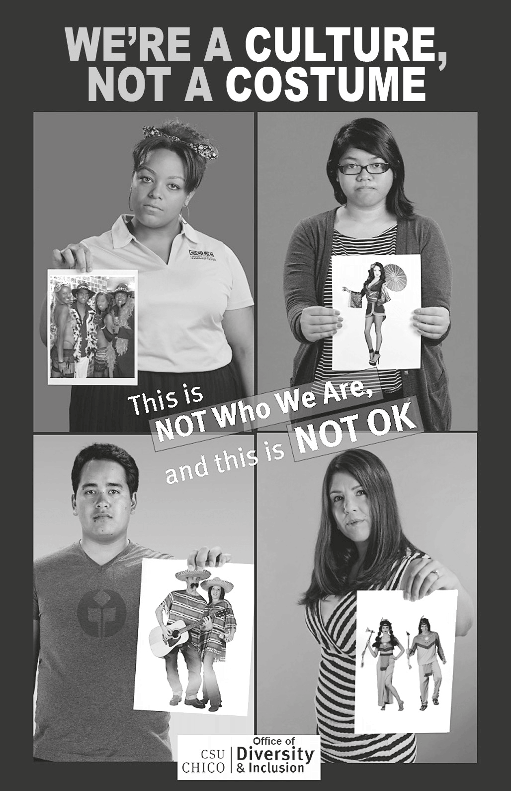 Nesse pôster de divulgação de uma campanha que aborda a diversidade e a inclusão, a interação dos elementos verbais e não verbais faz referência ao ato de