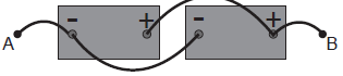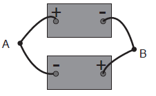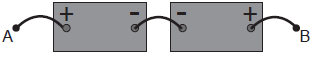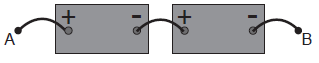Apesar de incomum, é possível sofrer um acidente utilizando baterias de 12 V. Considere que um indivíduo com a pele molhada sofreu uma parada respiratória ao tocar simultaneamente nos pontos A e B de uma associação de duas dessas baterias.