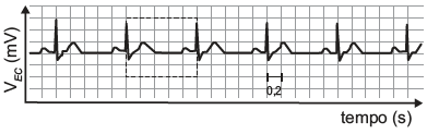 O eletrocardiograma é um exame cardíaco que mede a intensidade dos sinais elétricos advindos do coração. A imagem apresenta o resultado típico obtido em um paciente saudável e a intensidade do sinal (VEC) em função do tempo.