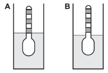Nestes recipientes, a posição de equilíbrio do densímetro está representada em: