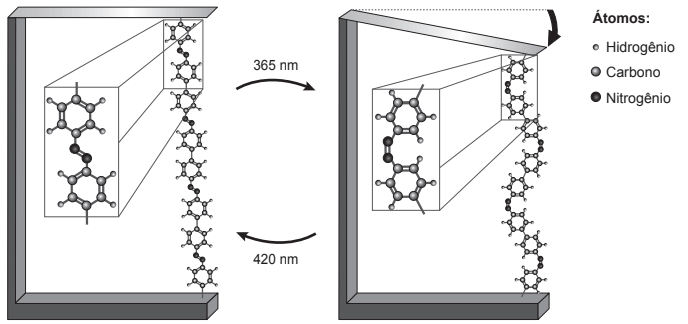 Pesquisas demonstram que nanodispositivos baseados em movimentos de dimensões atômicas, induzidos por luz, poderão ter aplicações em tecnologias futuras, substituindo micromotores, sem a necessidade de componentes mecânicos. Exemplo de movimento molecular induzido pela luz pode ser observado pela flexão de uma lâmina delgada de silício, ligado a um polímero de azobenzeno eaum material suporte, em dois comprimentos de onda, conforme ilustrado na figura. Com a aplicação de luz ocorrem reações reversíveis da cadeia do polímero, que promovem o movimento observado.