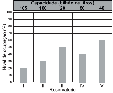 O gráfico apresenta o nível de ocupação dos cinco reservatórios de água que abasteciam uma cidade em 2 de fevereiro de 2015.